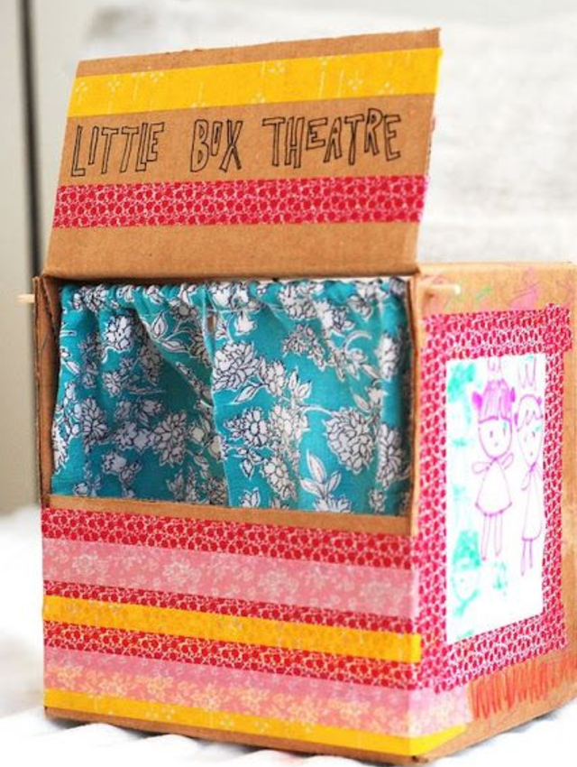Crianças adoram contar histórias, que tal aproveitar as caixas para fazer um palco e incentivá-las a criar novos personagens, cenários e histórias?