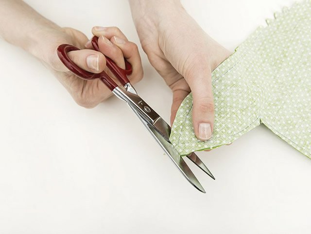 9. Corte as pontas das orelhinhas da peça para que elas fiquem arredondadas quando a peça for desvirada.