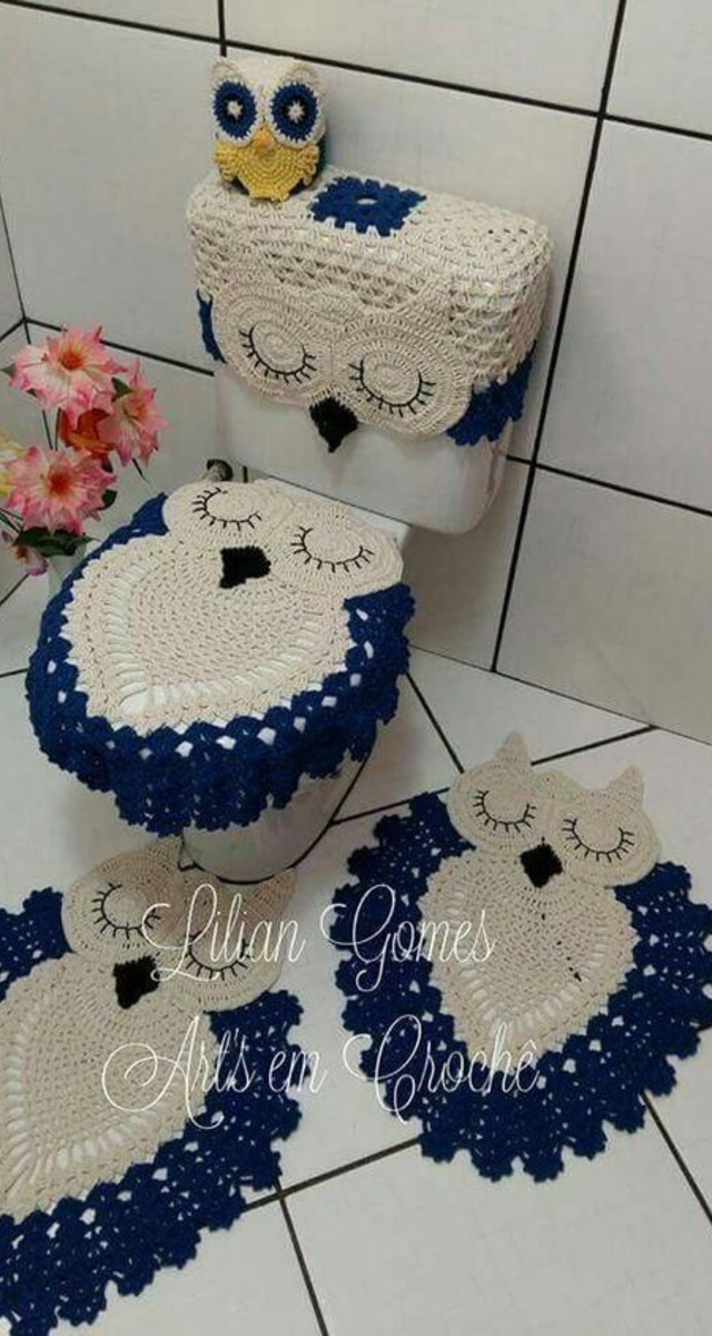 Os tradicionais kits para banheiro não poderiam ficar de fora dessa lista. São um clássico e entre seus motivos mais utilizados estão as corujas.