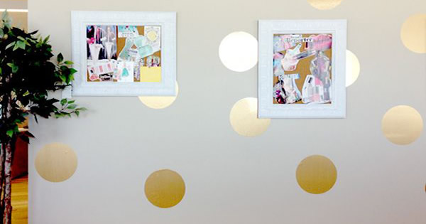 3) Usando o filtro de café em cone como molde, desenhe o formato no papel estampado com uma espessura mais grossa que você escolheu. Na imagem foi usado um papel com estampa de Poá, com pequenas bolinhas douradas espalhadas. Corte o formato de acordo com o número de sorvetes de tecido que vai produzir.