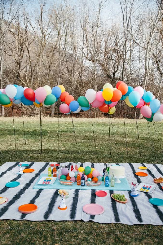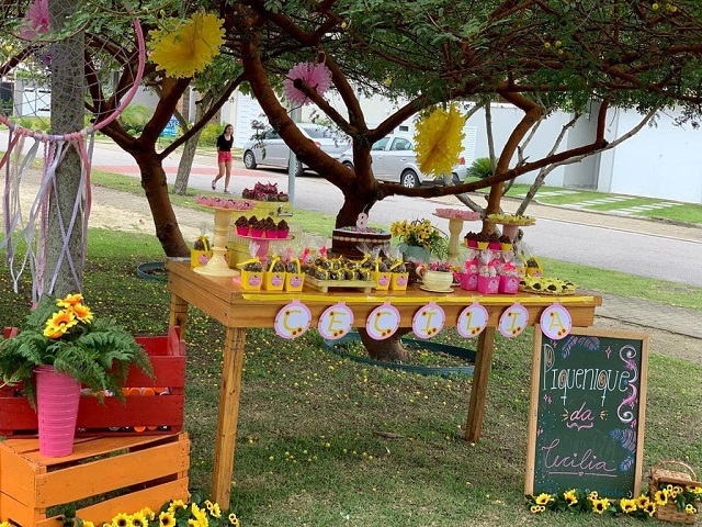 Para as comemorações que forem diurnas, uma boa alternativa é o piquenique! Capriche na decoração do seu quintal!