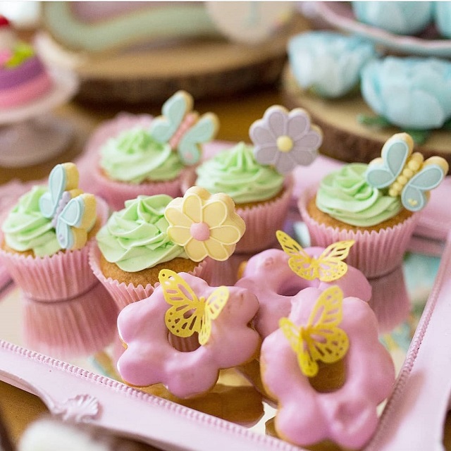 Além da decoração da mesa em si, você também pode fazer decorações especiais nos doces, como o uso de plaquinhas, confetes… Tudo para dar mais alegria a esse dia!