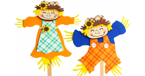 16) Faça com uma canetinha os traços do rosto e faça o detalhe do nariz do espantalho em feltro