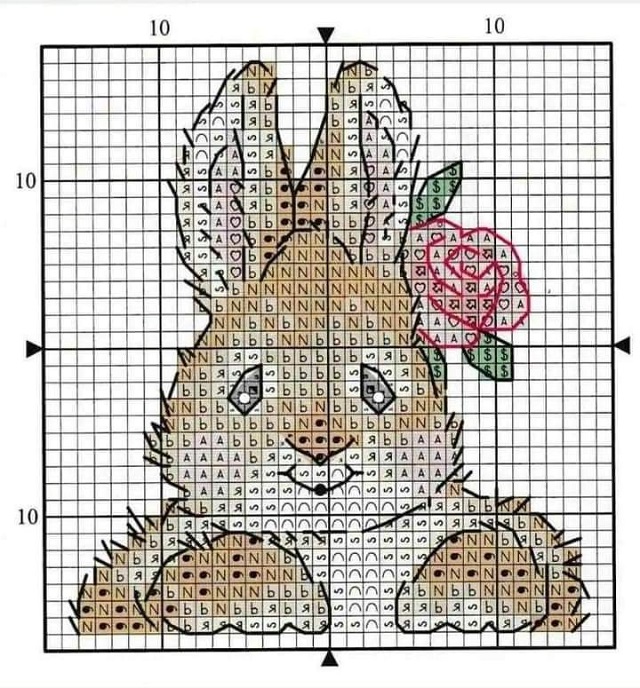 Vale lembrar que a ideia principal é trazer o coelho em ponto cruz, que é o símbolo mais importante e representativo da Páscoa.