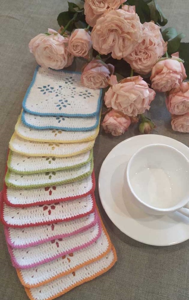 Além dos formatos mais tradicionais, você pode deixar a criatividade falar mais alto e produzir guardanapos de crochê dos mais diferentes modelos, como frutas, flores, estrelas, folhas e bichinhos.