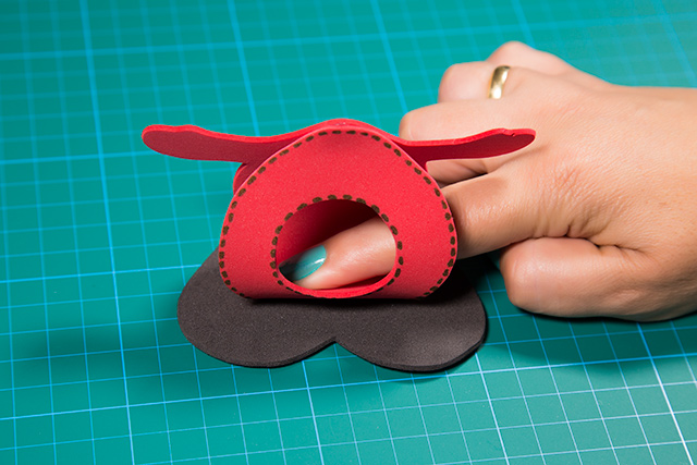 5 – Em seguida, passe cola quente na parte de cima do corpinho e una as duas abas, deixando o centro e as laterais abertas.