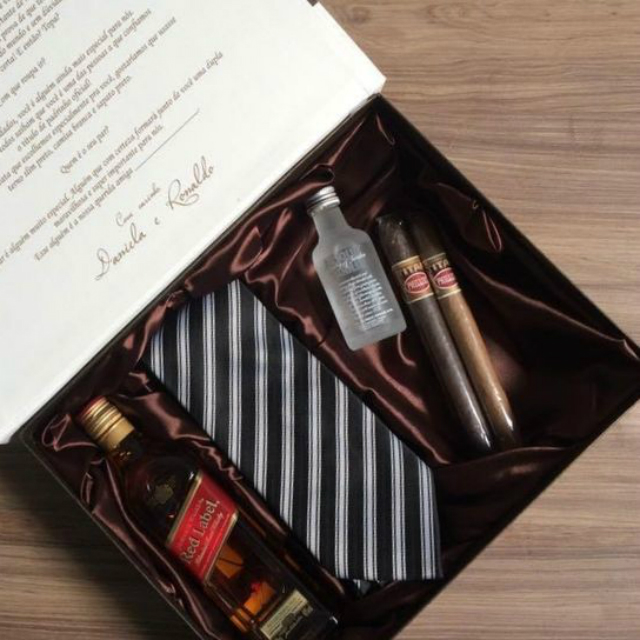 E você pode preencher os kits com taças, copos, garrafas e kits com bebidas, chaveiro e abridor de lata são unissex. Tenha certeza que farão muito sucesso!