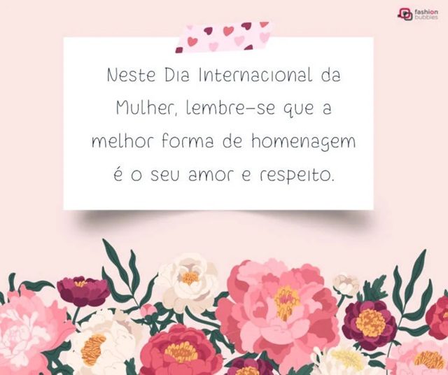 Postar nas redes sociais mensagens Dia da Mulher ou enviá-las a mulheres importantes para você – como amigas, familiares e colegas de trabalho – é uma forma de celebrar essa data e de reforçar a luta feminina por igualdade de direitos.