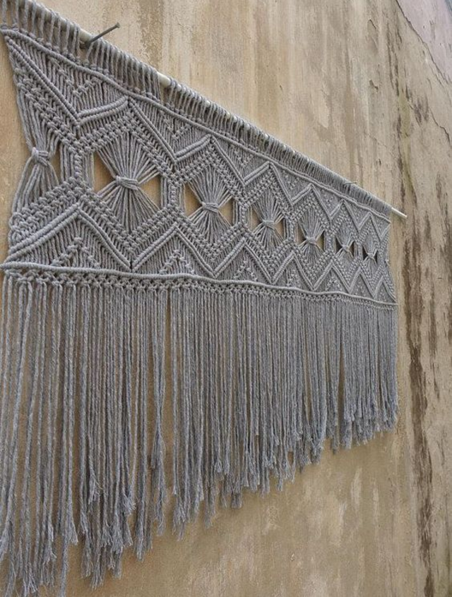 A técnica do macramê é versátil e pode servir para construir roupas, barrados, suportes para plantas, bolsas e muitas outras peças, porém os painéis estão em alta para a decoração de ambientes.