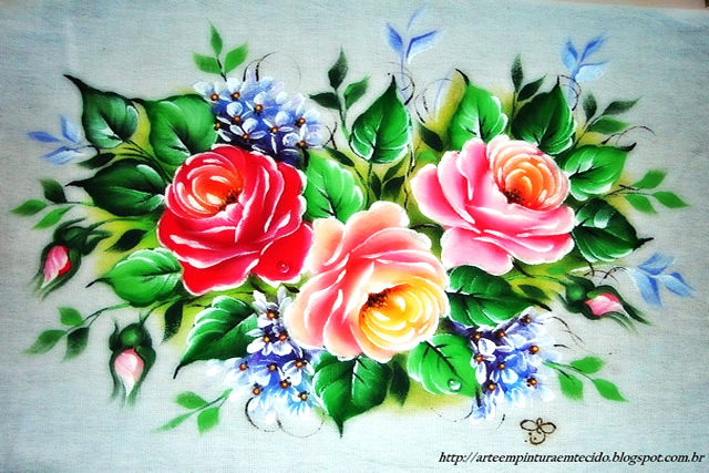 A pintura de rosas em tecido possui suas especificidades. Por ser uma flor com várias camadas, há um procedimento próprio que não pode ser aplicado em outros tipos de flores. Para uma pintura perfeita de rosas em tecido é preciso saber aplicar bem os contrastes de luz e sombra para que ela não fique com aquela aparência de “repolho”.