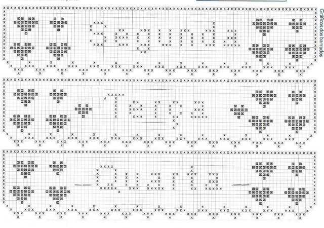 O interessante desse tipo de gráfico de ponto cruz é a possibilidade de criar novos a partir de monogramas (gráficos de letras) e pequenos motivos.
